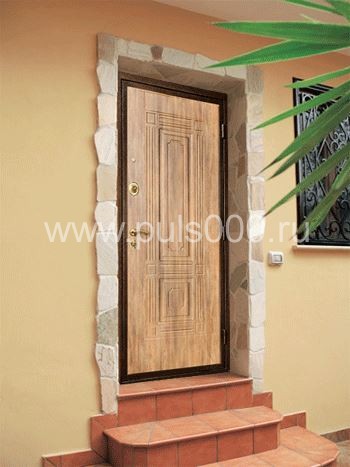 ‣ Металлические двери отличаются повышенной прочностью и безопасностью, а их цена доступностью. Они устойчивы к физическим воздействиям и обладают хорошими тепло и звукоизоляционными свойствами. Внешний вид входных металлических дверей в частный дом может быть разнообразным за счет различных отделок.